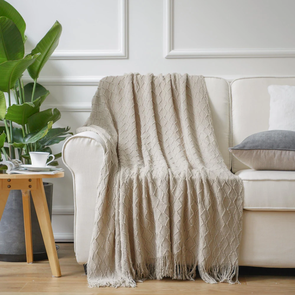 Простой, но утонченный трикотажный узор отлично смотрится на диване или стуле, придает цвет гостиной, спальне или ложе.