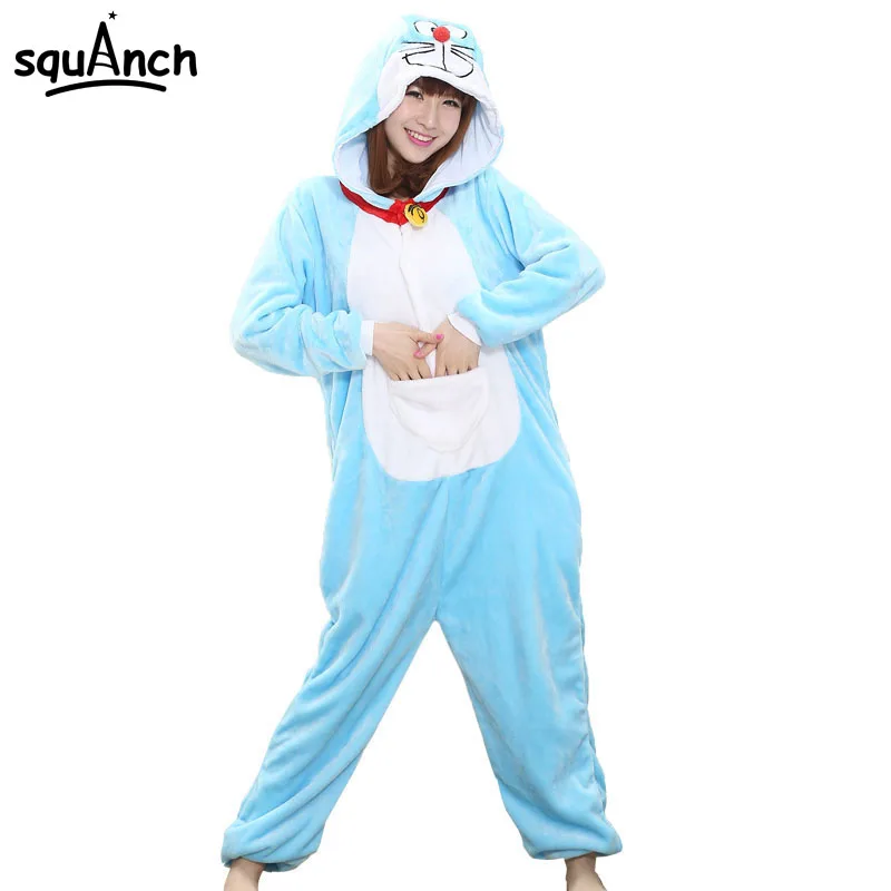 Женский комбинезон с героями мультфильмов Doraemon, Пижама для взрослых, милый синий кот, кигурумис, вечерние пижамы Аниме, зимний теплый мягкий спальный комбинезон