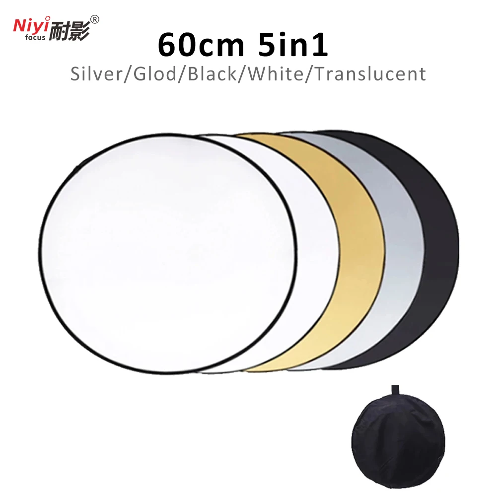 Портативный Складной Светлый круглый фотографический диск, 24 дюйма, 60 см, 5 в 1, аксессуары для фотографий, серебристый полупрозрачный