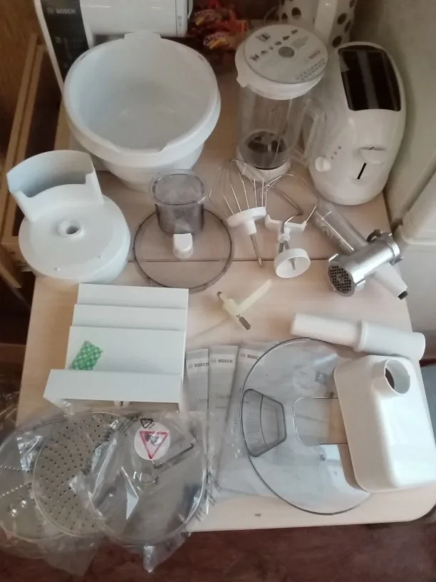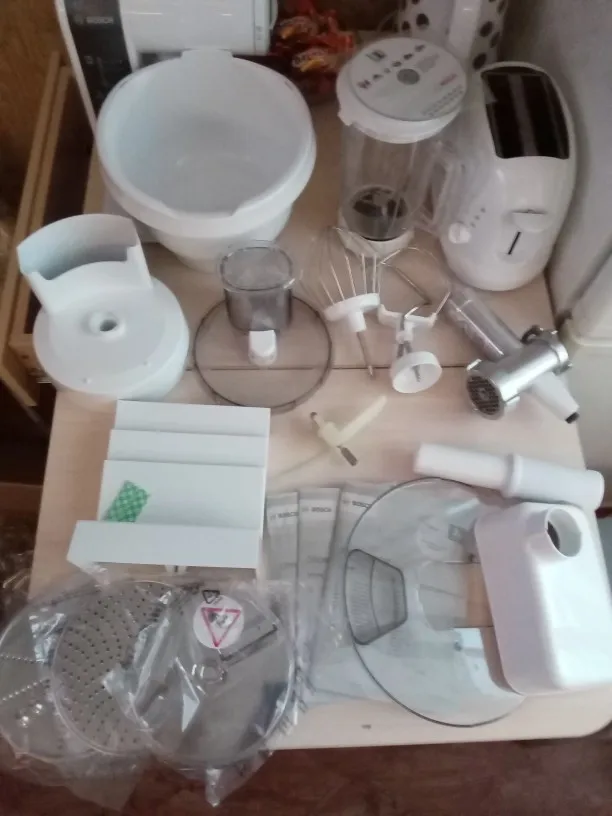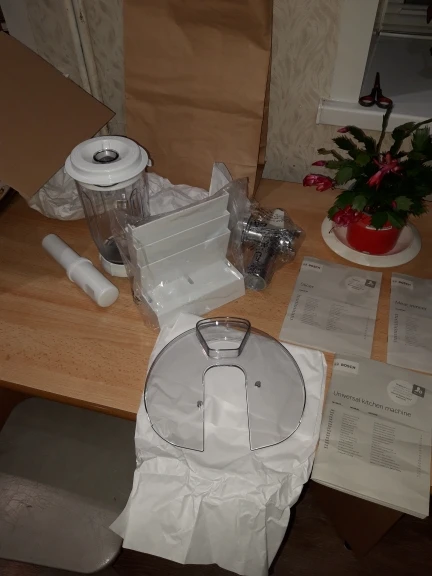 Заказ пришел очень быстро. Упаковка целая, сам комбайн- тоже целехонек...Первые ощущения-детская радость от приобретения! Пластик качественный, без постороннего запаха, тёрочки острые, прочные....Ну а в процессе использования-только положительные эмоции!....И режет, и месит, и взбивает, и рубит! Всё на 5+!!! Купила дополнительно шинковок Bosch и потенциал моего комбайна увеличился...Комбайном довольна ,желание повозиться на кухне возросло в разы! Спасибо Bosch, спасибо Али!