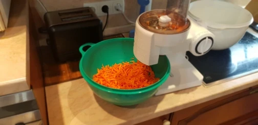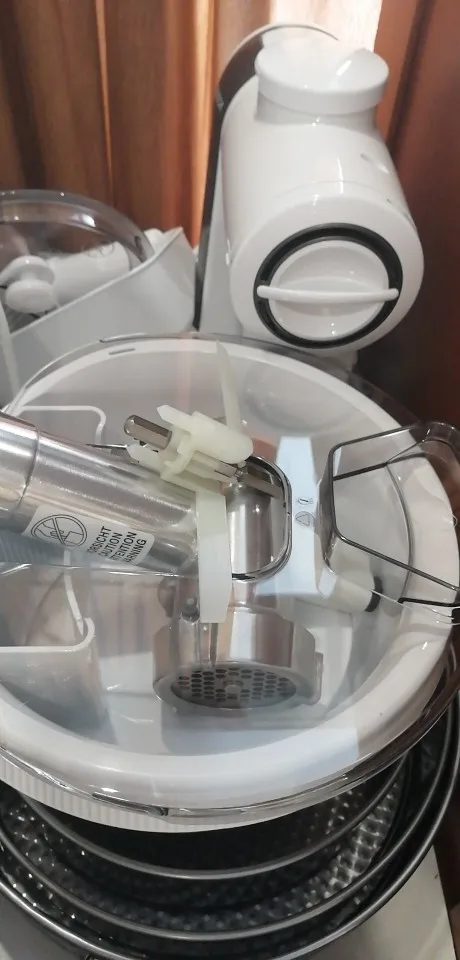 Это наш первый комбайн. В целом нам понравился. Есть недочёты, но цена оправдывает. Например, не нравится как устанавливается чаша, когда поворачиваешь/поднимаешь венчик, чаша может опрокинуться. Лучше бы сделали так, чтобы она крепилась к основе щелчком. Тесто для хлеба замесили, но было видно, что комбайну тяжело.