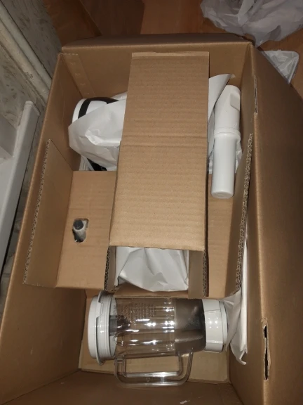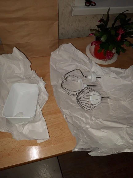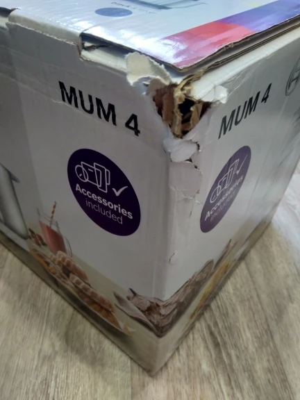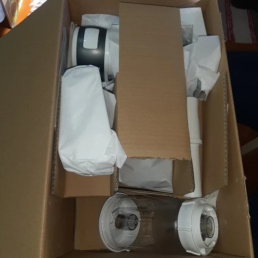 Пришёл за 3 дня, хорошо упакованный, принесли до самой квартиры. Без трещин, царапин и потертостей. Всё работает исправно. Успела приготовить на нём торт птичье молоко и молочный коктейль, с этими задачами справился отлично. Довольно тихо работает, взбивать теперь одно удовольствие, просто добавляю ингредиенты и он всё делает сам, взбивает очень хорошо. Качество пластика на высоте, абсолютно без запаха. Легкий в сборке, разобрались быстро. Мыть всё тоже легко. На неделе опробую каков он в завешивании густого теста, мясорубку и измельчитель, дополню отзыв.