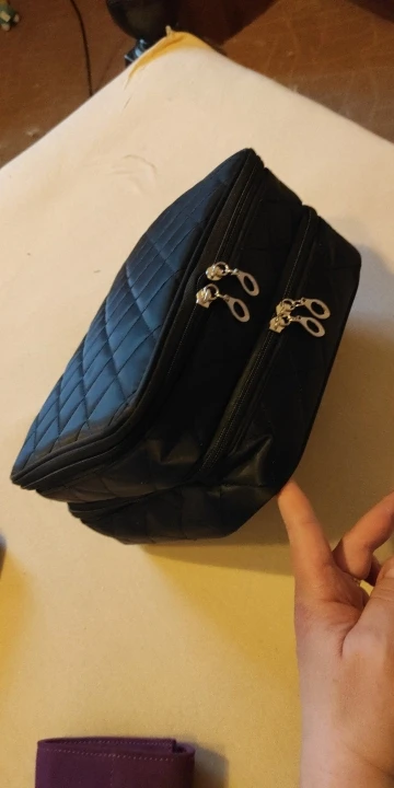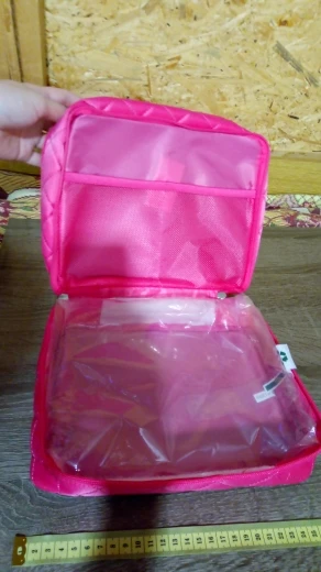 Косметичка просто бомба! Я в нее запихала всё, что хотела, теперь мои мелочи не валяются по дому! Нет постороннего запаха, от пыли легко простирается влажной тряпочкой Еще добавила пластиковые разделители, покупала отдельно Получилось еще круче! Спасибо!
