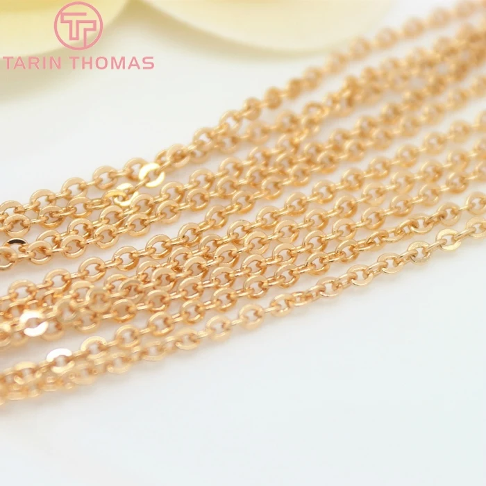 (4295) ширина 2 метра: 1,5 мм, 2 мм, латунная Плоская овальная цепь цвета 24-каратного шампанского золотого цвета, цепочки для ожерелья, высококачественные ювелирные аксессуары