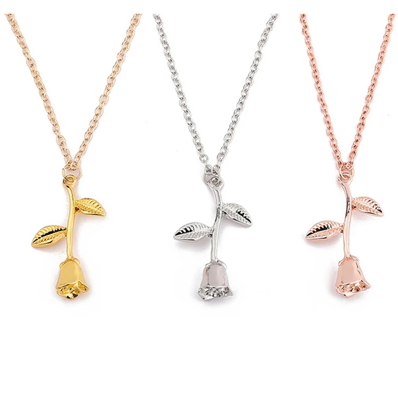 Подвеска в виде 3D розы, ожерелье с шармом, ювелирное украшение в виде цветка розы, красавицы и чудовища, для женщин и девушек, Вечерний Подарок