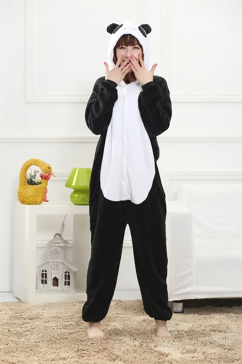 Пижама с пандой для мужчин и женщин, черно-белая Пижама с животными, вечерние фланелевые Комбинезоны для взрослых, мягкая зимняя одежда для сна