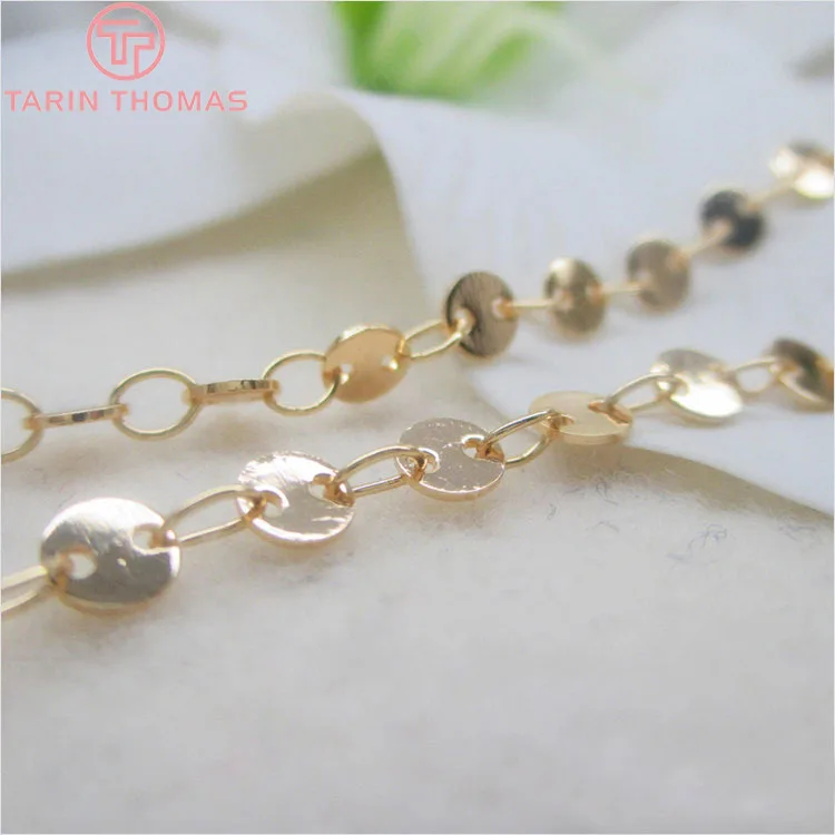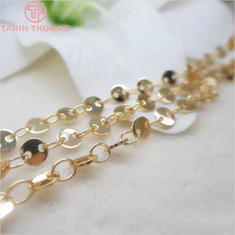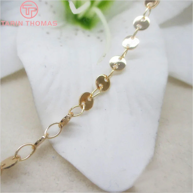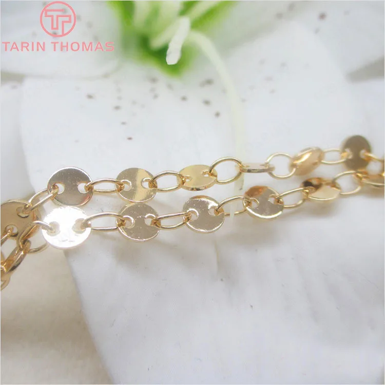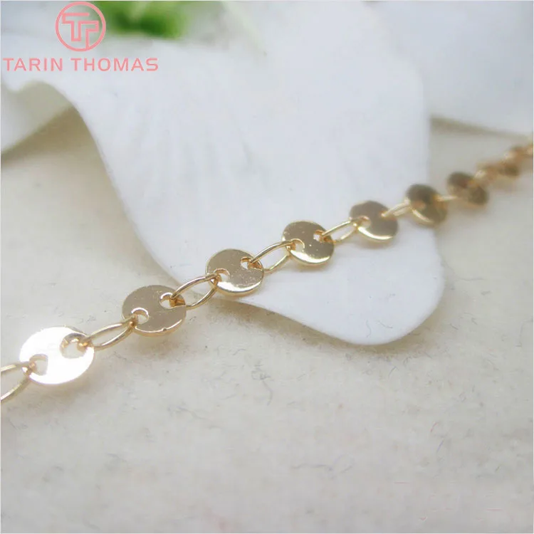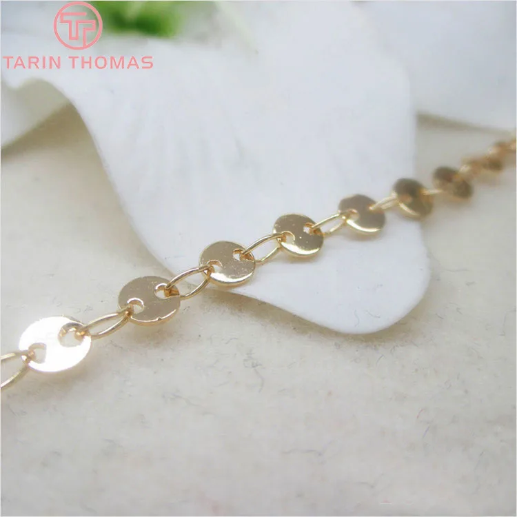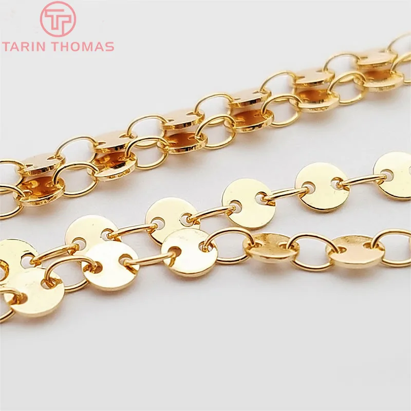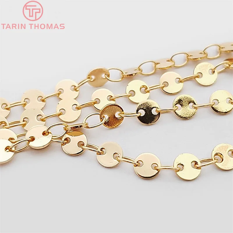 Латунная позолоченная цепочка с Круглым Диском, 4 мм, 24 К, цвета шампанского (4252)