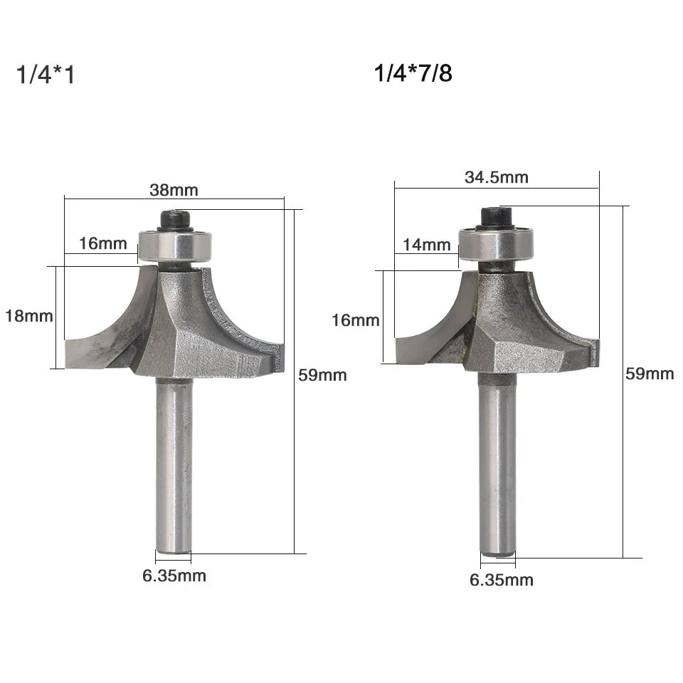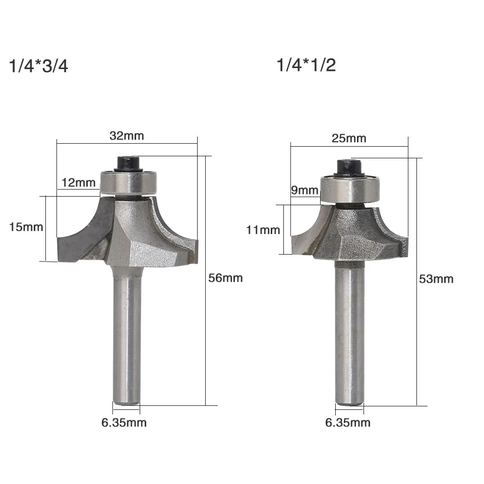 4 шт., радиус, округлый край, Формовочная фреза, хвостовик 14 дюйма