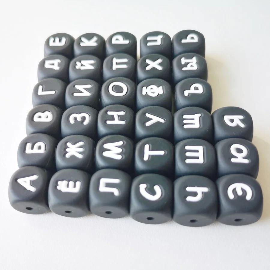 100 шт., силиконовые бусины с надписью на русском языке для любого наименования строки, 12 мм, бусины с жевательным алфавитом для детской строки