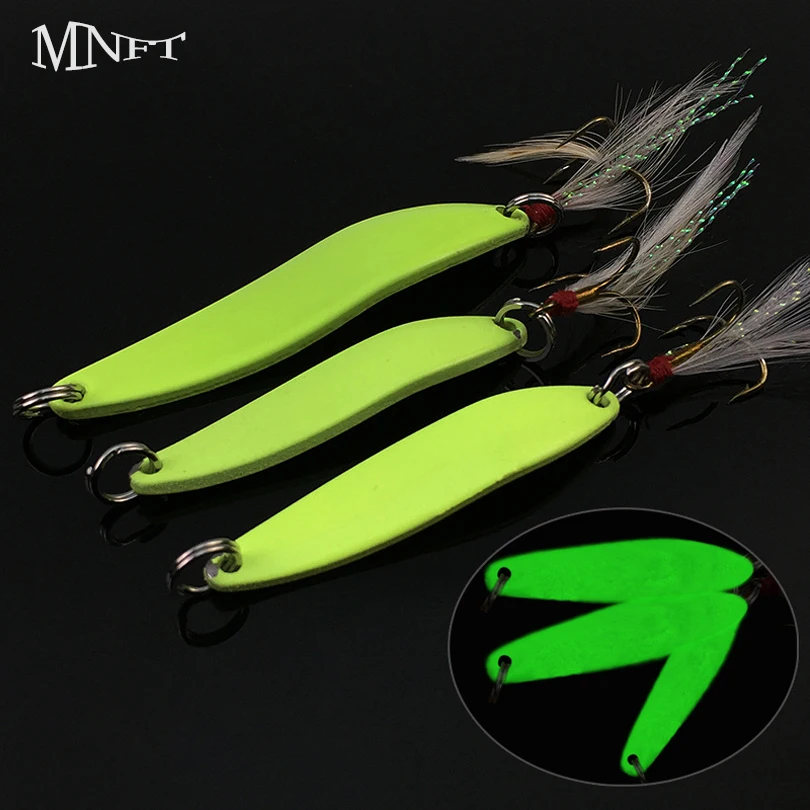 Серебристые Светящиеся жесткие приманки MNFT, 1 шт., искусственная приманка с тройным крючком, металлические блестки, перо, приманка для рыбной ловли, 571013 г