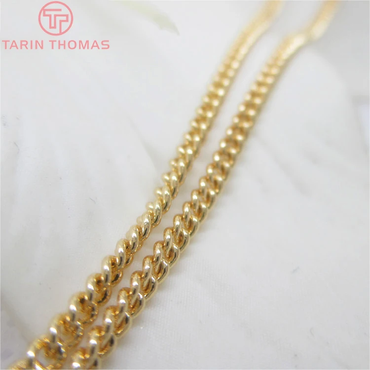 Медная Расширенная цепь с шифрованием, 2 м, ширина 4290 мм, 24 К, цвет золото, Ювелирная фурнитура высокого качества сделай сам (1,9)