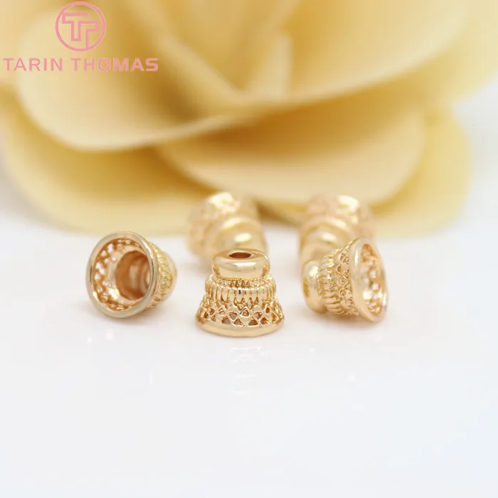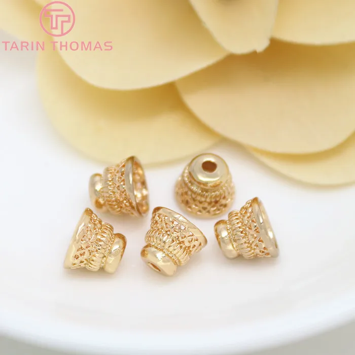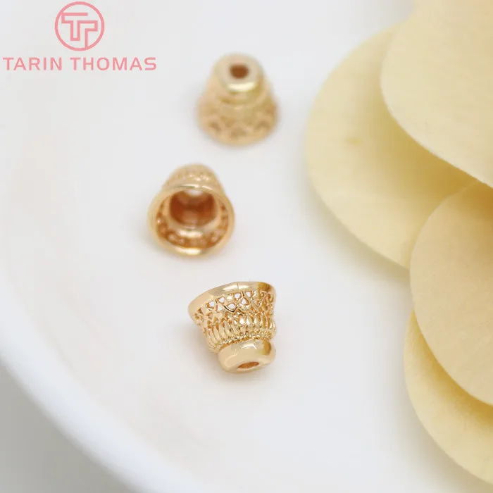 Латунные шапочки для бусин с покрытием 24-каратным золотом, 8 х7 мм, 10 шт.