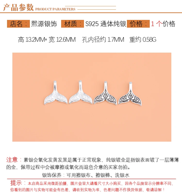 Узор подвеска рыбий хвост стерлингового серебра тайское модное серебро пробы аксессуары, браслет ручной работы, ожерелье, кулон