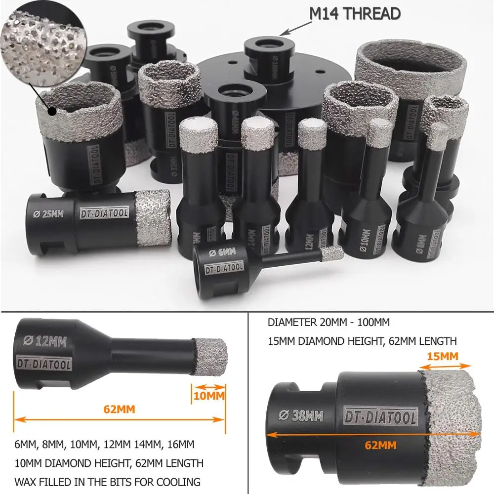 100 мм сухое вакуумное паяное алмазное корончатое сверло сердечник для камня плитки Отверстие пила Профессиональное качество сверла резьба M14