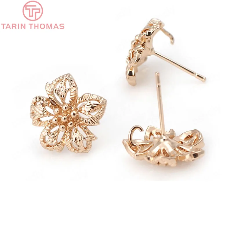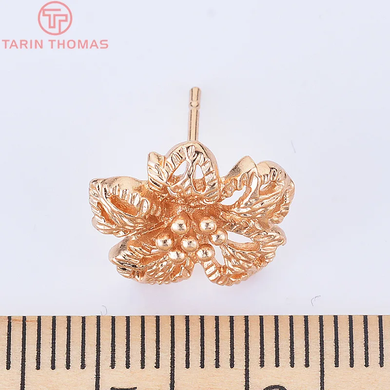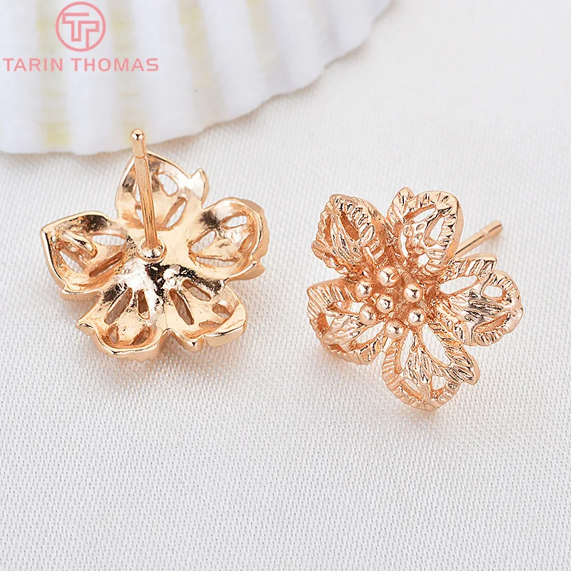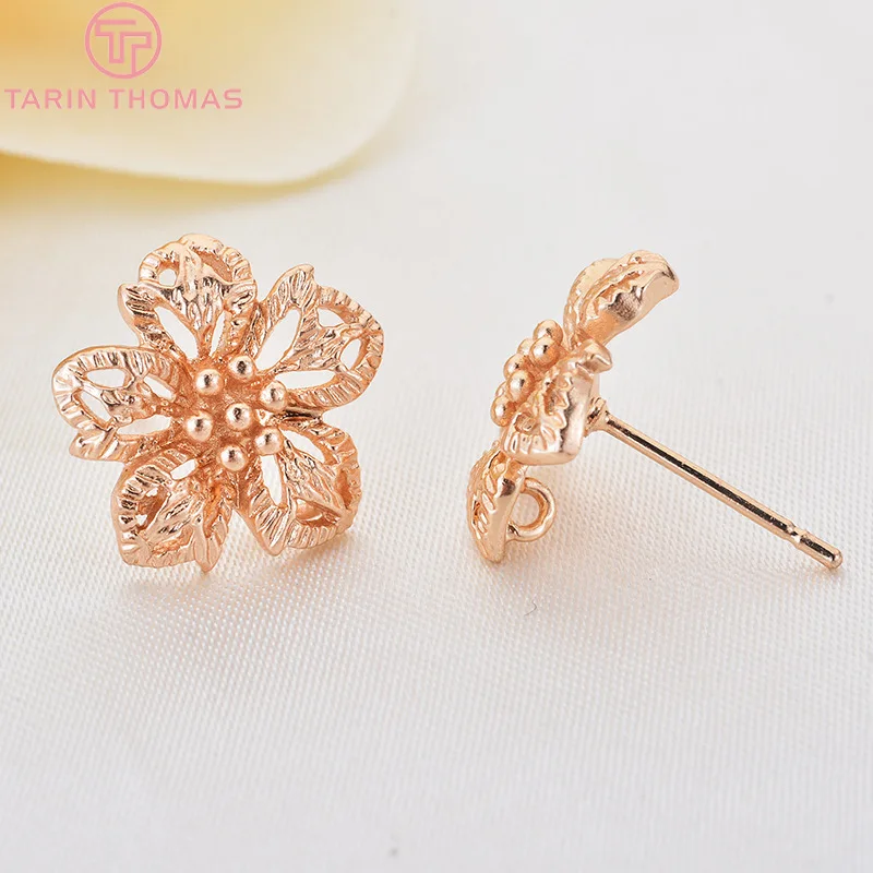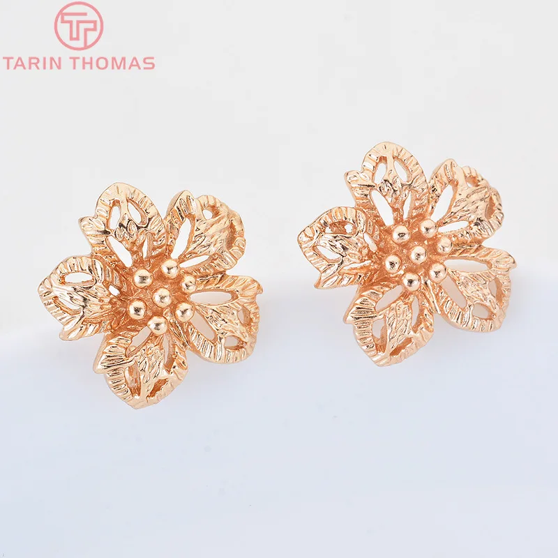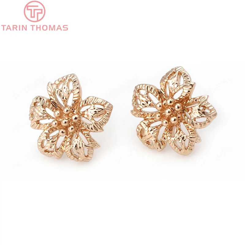 6 шт, латунные позолоченные серьги-гвоздики с цветком, 2313 мм, 24 К, цвета шампанского