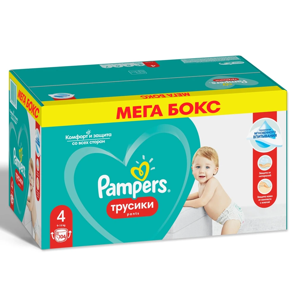Трусики Pampers Pants 9-15 кг, размер 4, 104 шт
