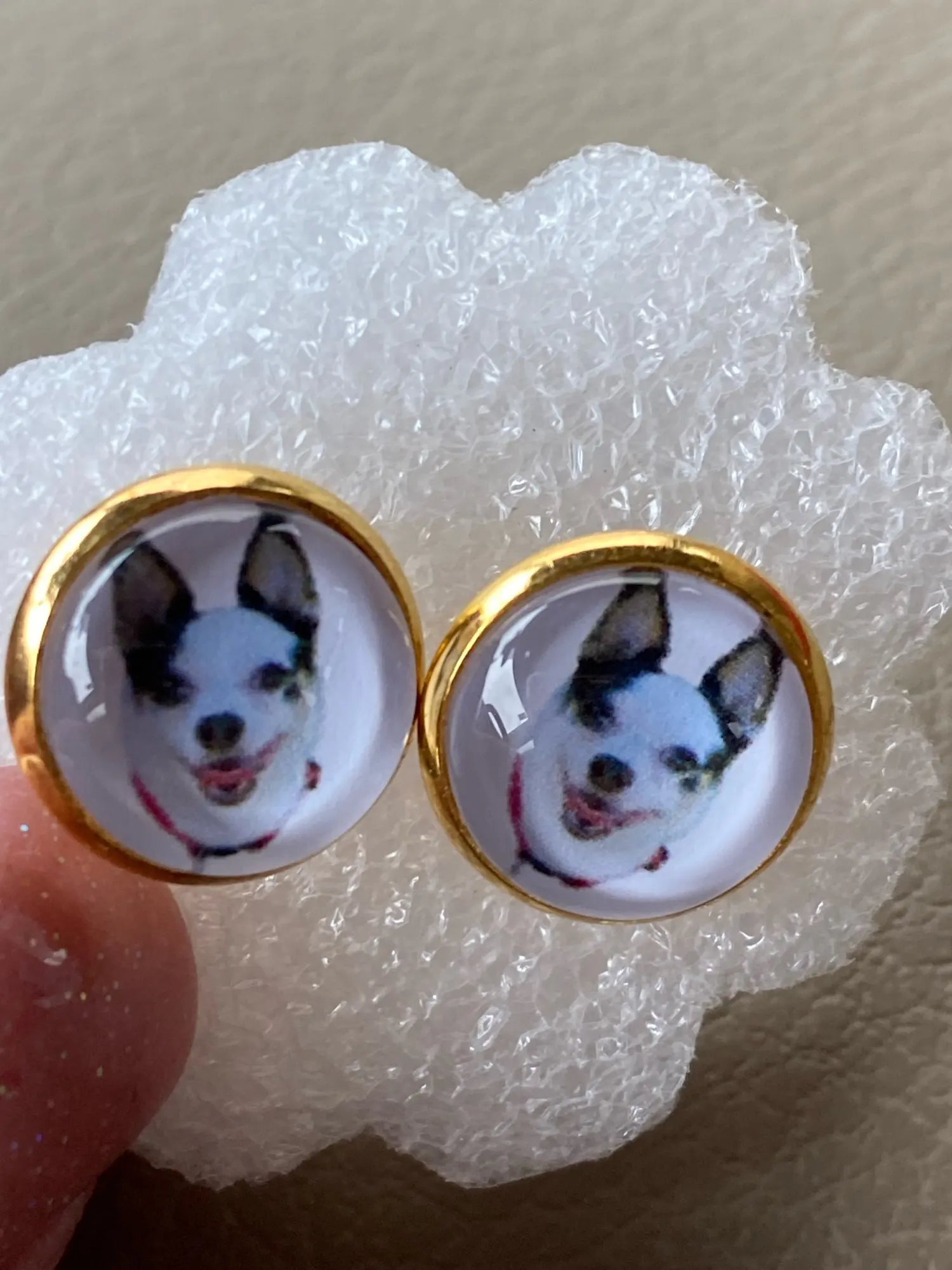 Персонализированные серьги-гвоздики на заказ, фото, для мамы, папы, детей, дедушки, родителей, дизайн, фото, подарок для семьи, Подарок на годовщину