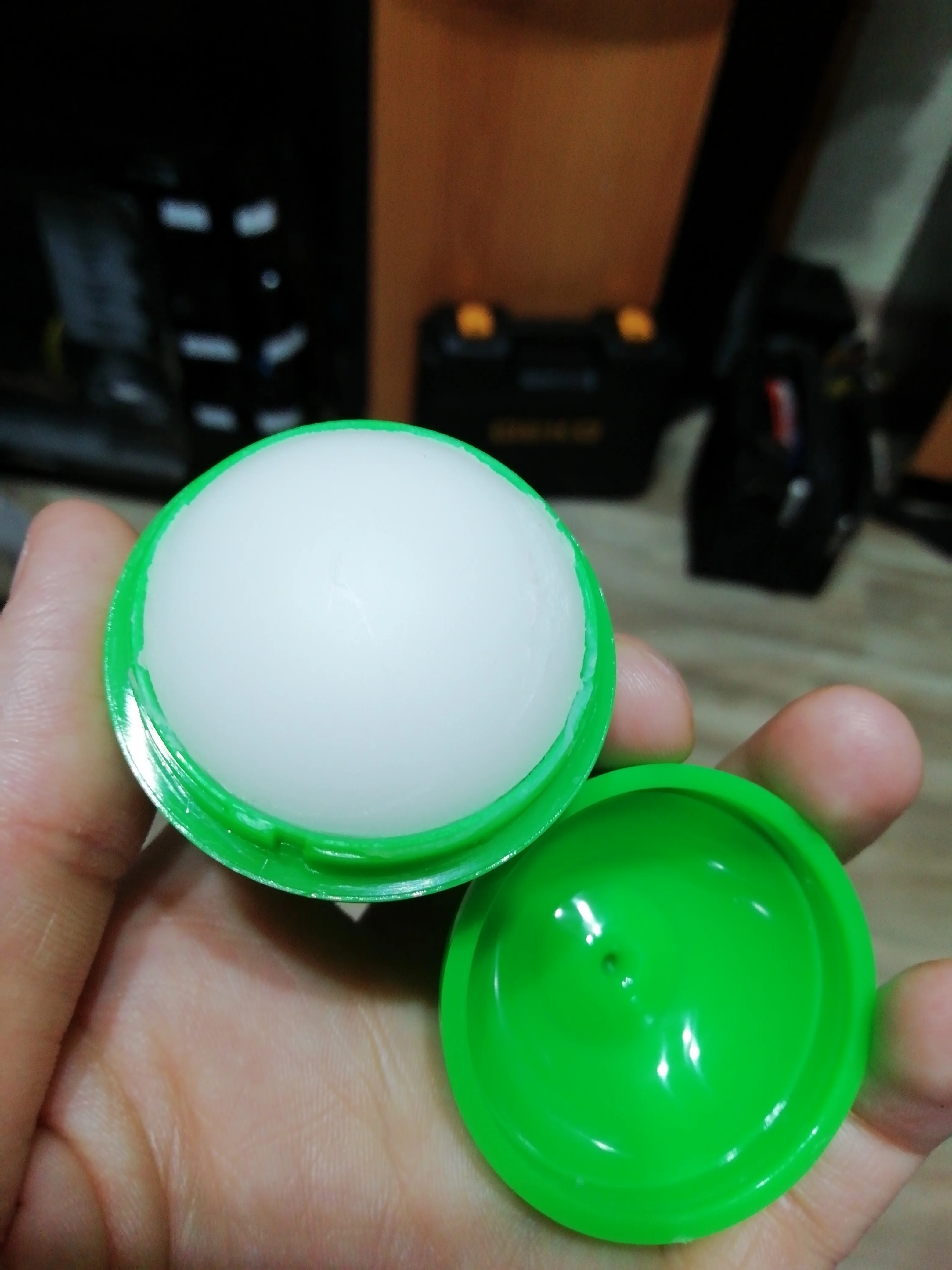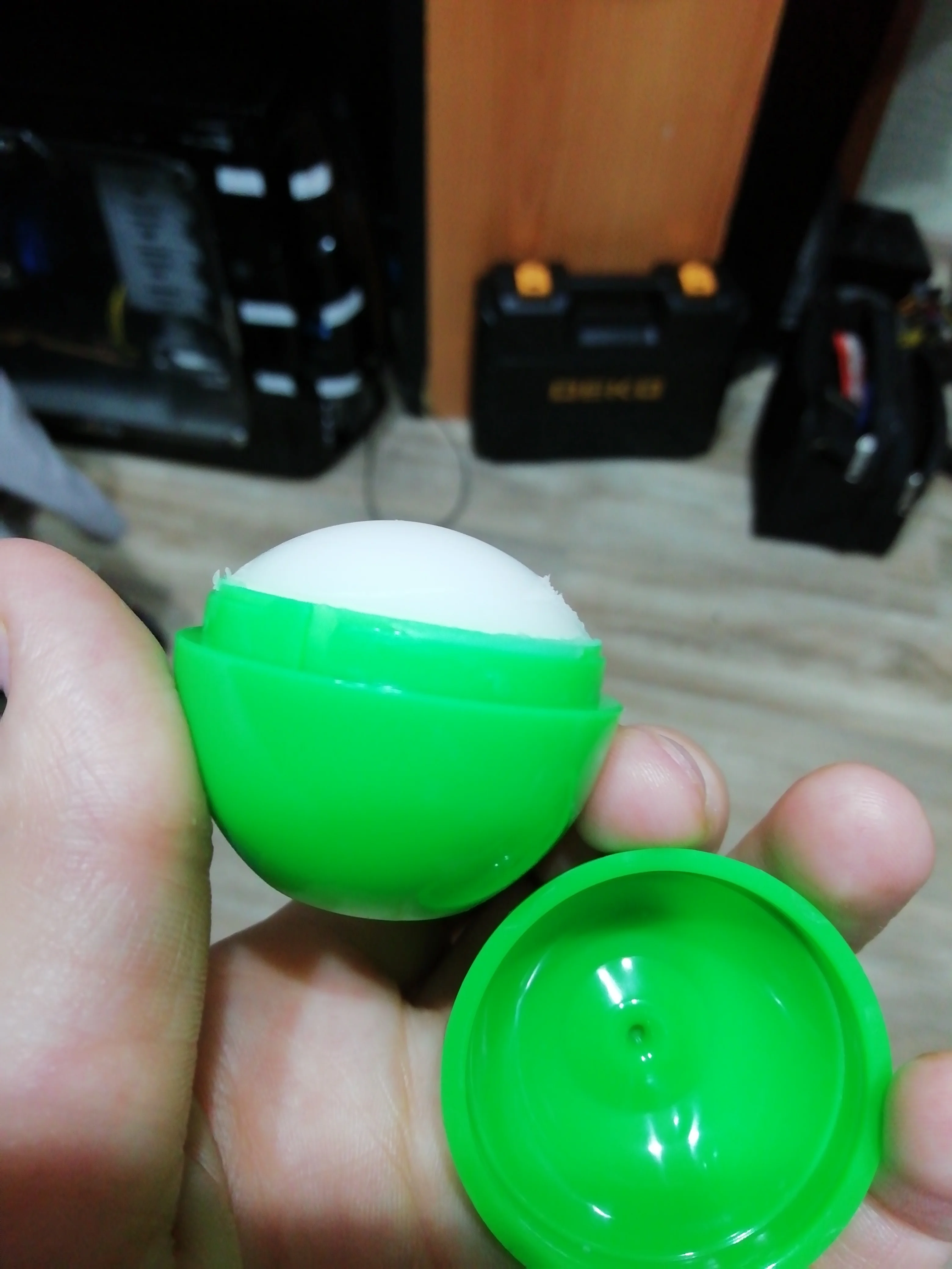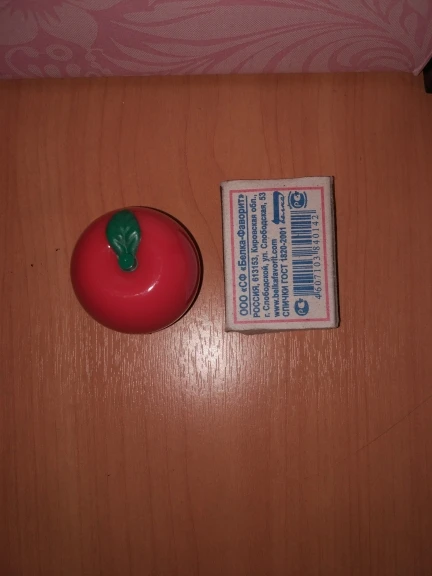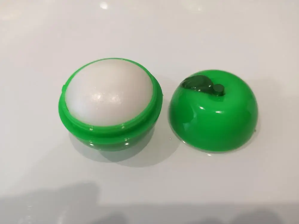 12/08 заказывала в Тверь, на почту пришло лишь 28/10.Доставка более двух месяцев. Потому, если не к спеху, запаситесь терпением или оплачивайте доставку, чтоб быстрее пришло и отслеживалось)) зеленое яблоко без какого-либо цвета, обычная гигиеническая помада на основе вазелина. Пахнет вкусно, яблоком. Не понравилось, что крышка тут не закручивается, а защелкивается. Не особо-то и надежно, крышечка держится хлипко. Бальзам практически сровнялся, не выпирает, как в подобных бальзамах. Пользоваться потом будет неудобно, только если использовать кисточку. Если губы совсем-совсем сухие, то бальзам их не спасет, лучше использовать ночную маску-бальзам для губ(пробник lebelage с али в помощь). В качестве ежедневного ухода нормальным губам или перед нанесением матовой помады - вообще красота. Брала дочке, но из-за неудобной крышечки и стика оставила себе в виде яблока, а ребенку отдала гигиеничку в виде клубники. Покупала за 72р