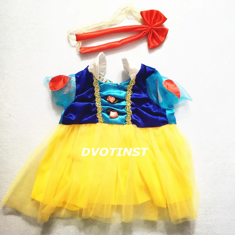 Dvotinst Новорожденный ребенок Фотография реквизит Принцесса Белоснежка платье + головной убор Косплей Костюм студийная съемка фото реквизит
