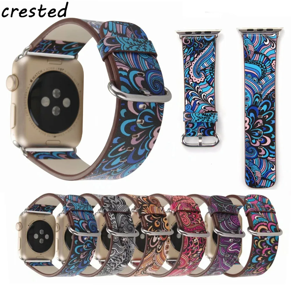 Ремешок кожаный для Apple Watch band 44 мм 40 мм 45 мм 41 мм 38 мм 42 мм, браслет с цветочным принтом для часов iWatch series 3 4 5 6 7