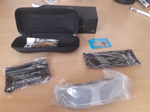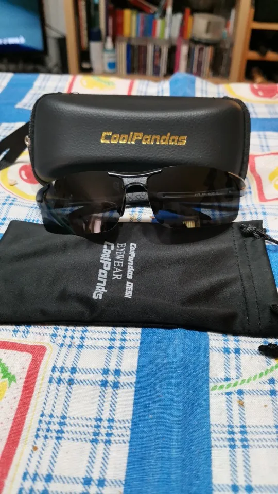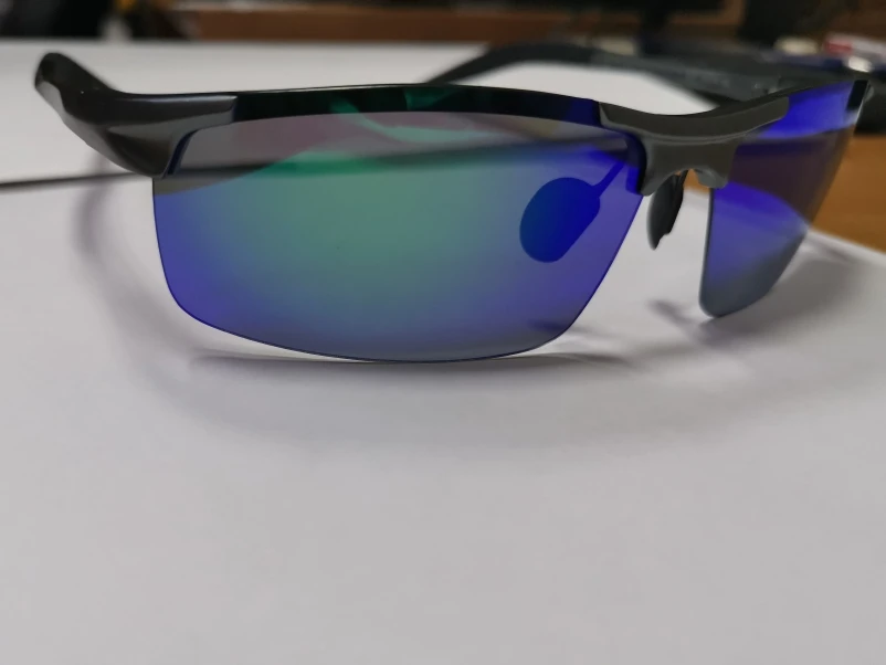 Заказывал зеленые очки, качество хорошое но они скорее с синим переливом, чем просто зеленые. Немного светлее, чем я ожидал (похожие Veithdia были темнее но быстро облезли). Поляризация есть. На чехле нет логотипа поэтому 4 звезды.