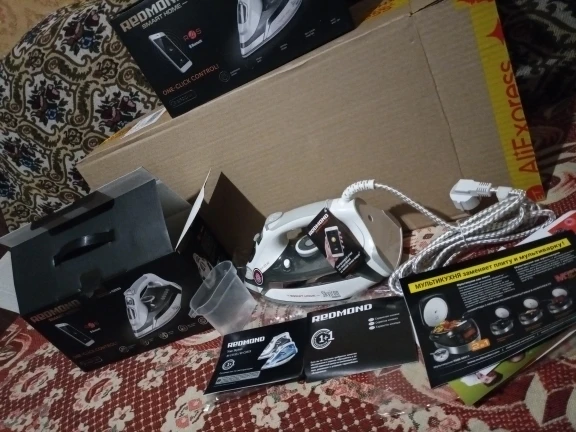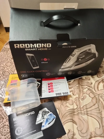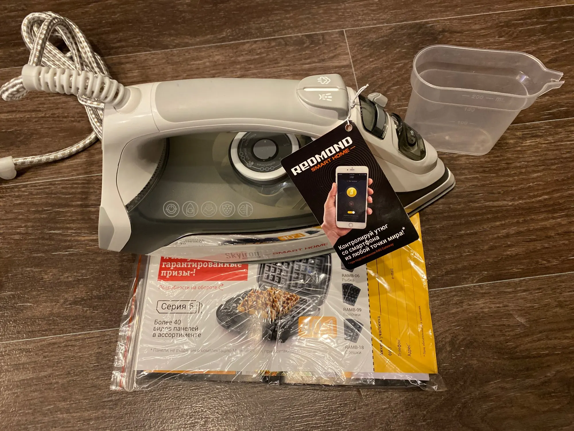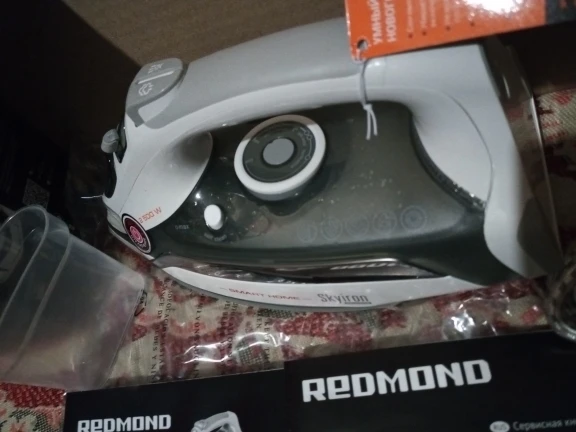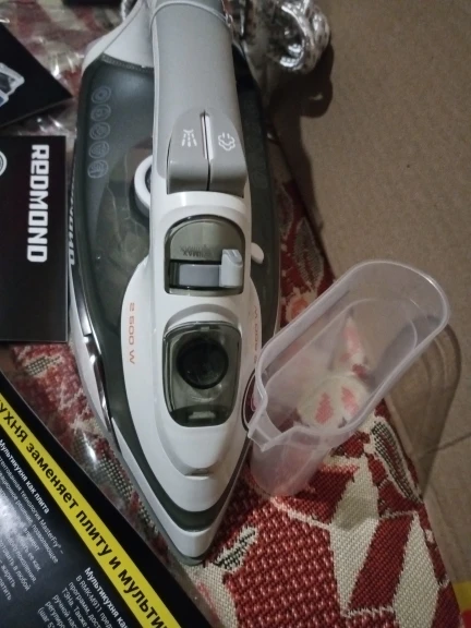 Отличный утюг, паром бьёт мощно, вода не течёт, отсек для воды большой. Короче описание точное, а то что там кто то пишет про капли воды, на мой взгляд это всё ерунда просто придирки, скорее всего утюг проверяют перед отправкой. Но я честно говоря не обратил внимания были или не были капли. Одно мне не понравилось что шнур очень прям сильно длинный, на фото показал, ну куда такой ). И ещё одно, в документации указано что можно зарегистрировать утюг на сайте REDMOND и получить ещё год гарантии. Я прошёл регистрацию, добавил утюг, теперь два года гарантии. Но там есть некая информация что продавец должен поставить печать в гарантийный талон ( в комплекте 2 книжки, гарантийная и паспорт) если печати нет (а её нет) то при обращении в сервис центр могут отказать. Так что при заказе спрашивайте продавца на всякий случай. Производитель срок службы установил 3 года.