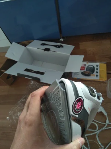 Утюг пришел с водой внутри, то есть его уже скорее всего кто-то по эксплуатировал, так же имеются различные мелкие царапинки. Первое впечатление испорчено.