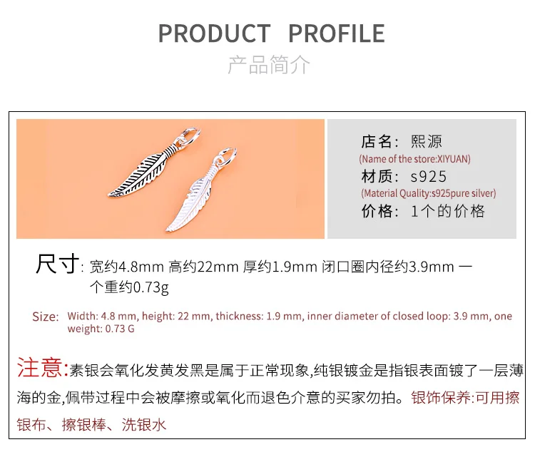 Кулон с пером, подвеска из стерлингового серебра S925 пробы, ювелирный материал, аксессуары для браслетов из бисера ручной работы