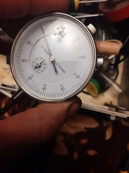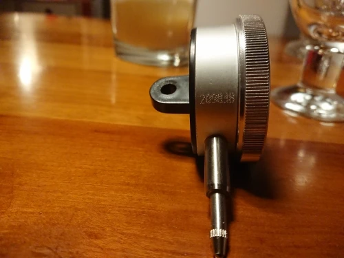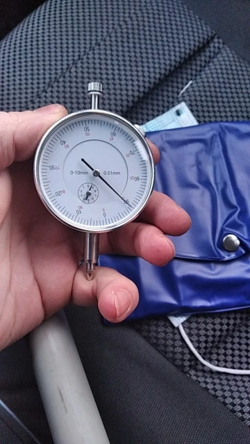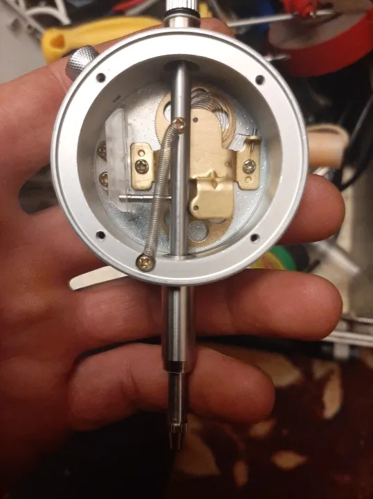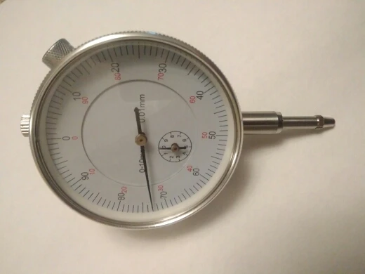 Индикатор пришел не совсем исправным. Один из болтов держащий внутри пружинку подпирающую вращающийся циферблат, был с сорванной резьбой, из-за этого циферблат был заклинившим и не вращался. Нашел подходящий винтик, смазал и починил. Разбирается снаружи, начинать нужно с пружинного кольца держащего стекло. Качество изготовления посредственное, требует доводки. Маленькая стрелка начинает отсчёт на 25 соток раньше. Решается подгонкой стопора сверху.