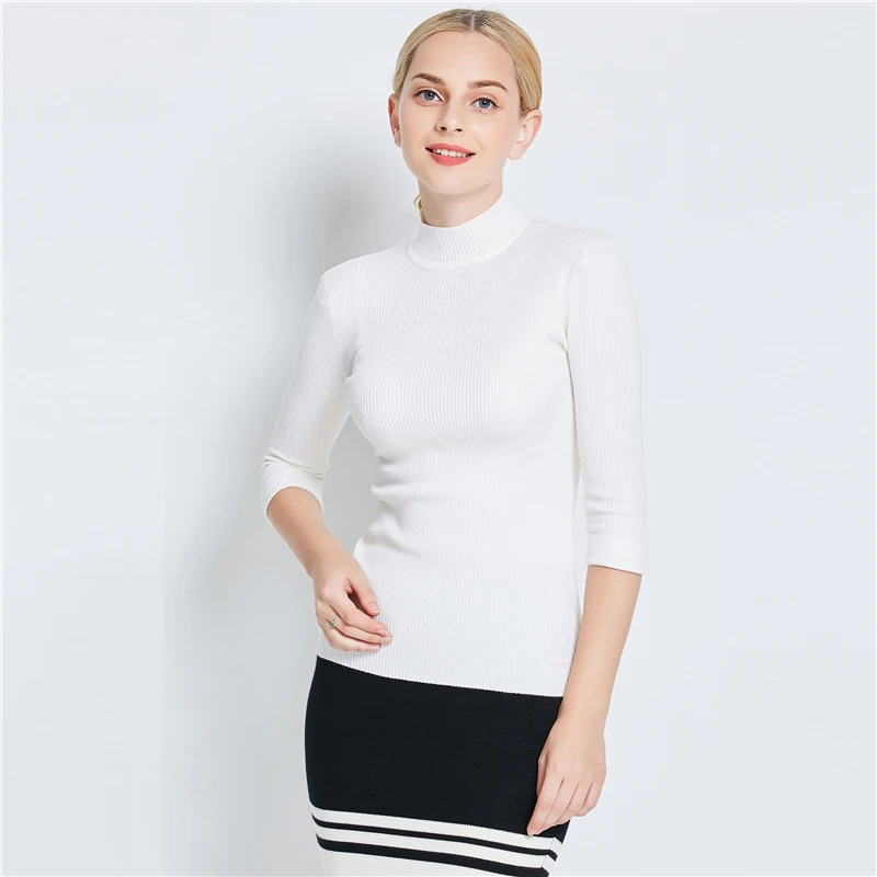 Осень 2021, свитер с рукавом три четверти, тонкая однотонная водолазка, Пуловеры, свитеры, элегантный весенний свитер в европейском стиле