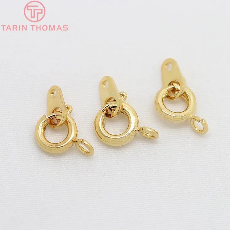 (3249)4 шт. 6x9 мм позолоченные латунные Пружинные круглые застежки 24K, аксессуары высокого качества для ювелирных изделий