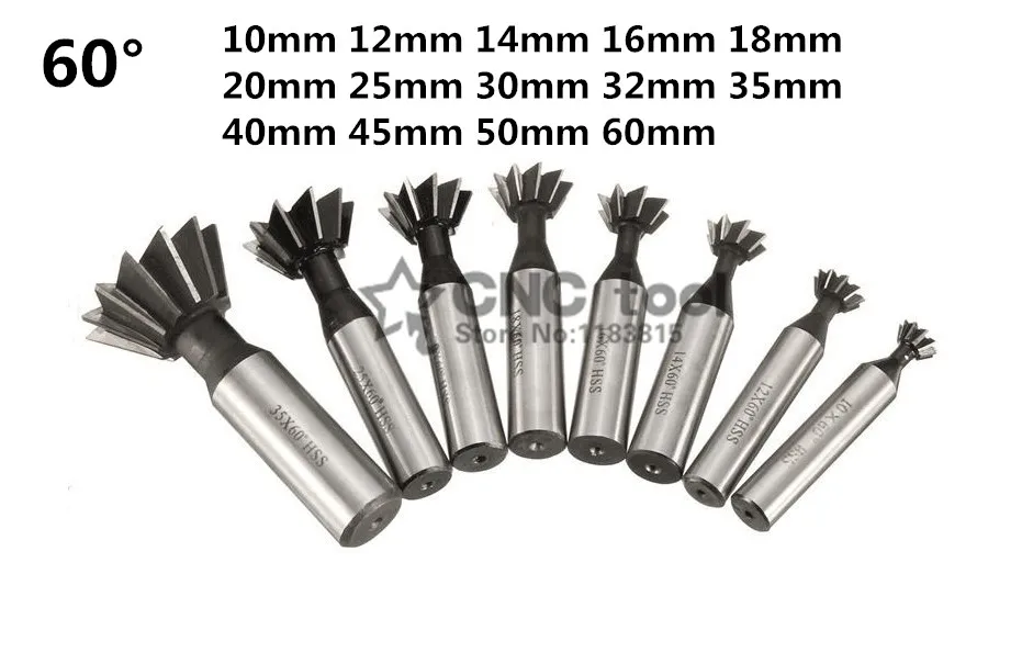 Фрезы из быстрорежущей стали Ласточкин хвост, 60 градусов, 10 мм, 12 мм, 14 мм, 16 мм, 18 мм, 20 мм, 25 мм, 30 мм, 32 мм, 35 мм, 40 мм, 45 мм, 50 мм, 60 мм, 1 шт.