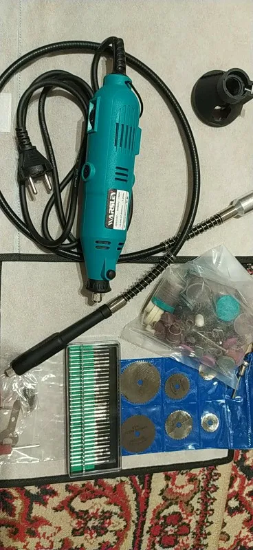 Очень хорошая и нужная вещь. Набор насадок граверов полировочных кругов свёрла. Я восхищён