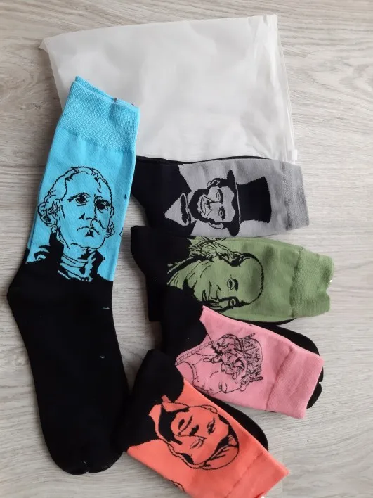 Очень хорошее качество у носок. Эластичные, яркий дизайн, выполнен качественно. Но коробки нет. В пакете