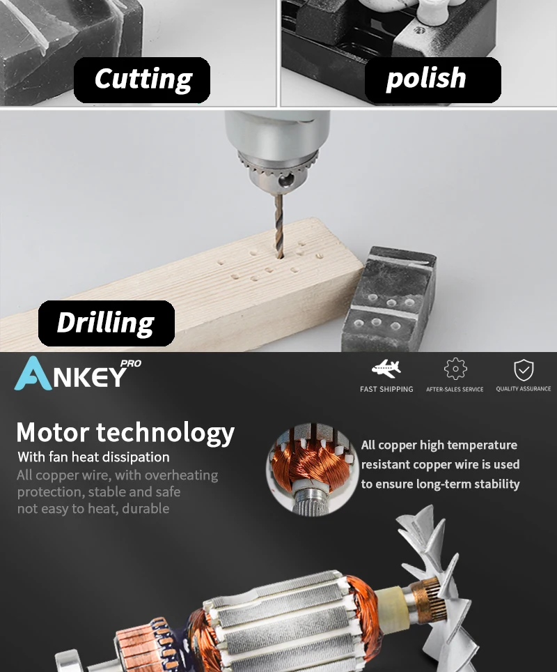 - 58 дней в Ростов. Но это нормалёк. Двигатели, аккумуляторы на аэропланах не перевозят; только гужевым или железнодорожным. Отличный инструмент. Заказывал без чемодана. Единственно, что повредили коробку с алмазными борами (возможно козлиным копытом); боры с железом справляются. Остальное из комплектации, конечно же не супер-пупер, но для дома - желаемо; пусть и насыпом в кульке. Кулачки на патронах сходятся. Биений нет. С гибким валом "машинка" как-то натужно жужжит (на минимальных оборотах), хотя сам по себе трос вращается легко. Возможно надо разобрать и, плеснуть смазки. Сделано аккуратно (есть подозрение, что под внутренний рынок). В комплекте запасные щётки. Нагрузим, посмотрим. ANKEYPRO Official Store - рекомендую, однозначно. Выбирайте, заказывайте.