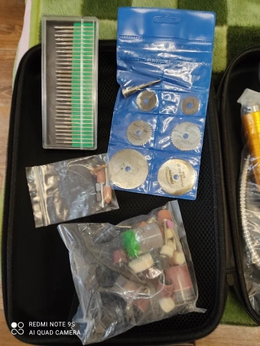 Очень доволен набором, каждым из его механизмов и доставкой. При ожидаемом периоде 36-52 дня доставка в Сыктывкар, Россия прошла за 34 дня, причем курьером СДЕК принесли прямо на работу. Из-за того, что набор достаточно тяжел, то краешек крышки из оргстекла коробки с борами был немного отколот. Это мелочь, за то дремель хорошо смазан, работает во всех режимах тихо, и с насадкой кучки для гравировки тоже работает без лишнего шума. Я заказывал 4-й набор (или AKQAZS111 по нынешней маркировке), жаль, что тогда не было комплекта с кейсом. Теперь придется заказывать кейс отдельно для всего набора. Не прогадать бы с размерами кейса. Надеюсь на поддержку диалога с продавцом, чтобы купить нужный кейс.