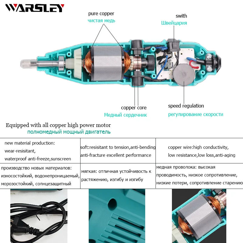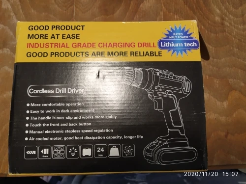 Доставка 40 дней, могла и быстрей прейти повлияли новогорнии праздники. Дрель как на фото. Шнур для сети 1,4 метра , этого достаточно. Регулировка оборотов средняя, ну что я хотел за эти деньги электронного не будет. Оно имеет 6 уровней и максимальный(при повороте на максимум слышен щелчёк, наверно отключение платы регулятора). Пластик качественный. Тумблер включения стандартный, если что не трудно будет найти в замену. Так же он утоплен и не совсем удобен, но зато не нажмёш по неостарожности. Установленная цанга на самой дреле не понравелась, както насадки ставятся не точно и поставил латуневые сними вроде нормуль(их там четыре, лучше докупить комплект) Комплект не богат но для первого сойдёт. А так я доволен, брать можно