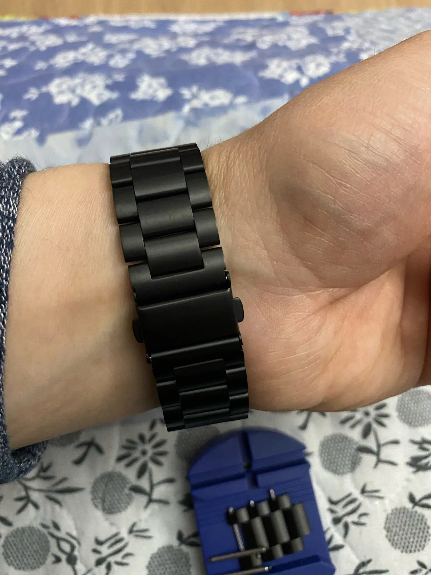 Отличный продукт. В комплект также входит устройство, которое поможет вам сократить стальной ремешок. Я действительно доволен браслетом, довольно легкий и соответствует точному цвету моих часов.
