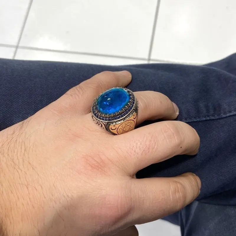 Специальное кольцо для мужчин из натурального сапфирового камня и с...