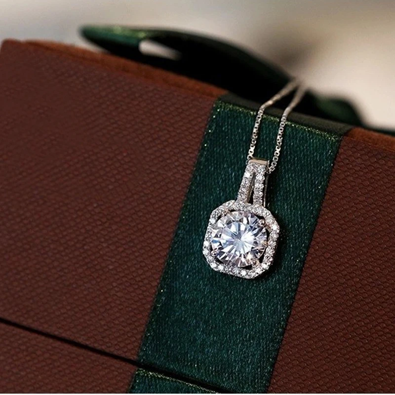 Ожерелье женское из серебра 925 пробы с квадратным кристаллом