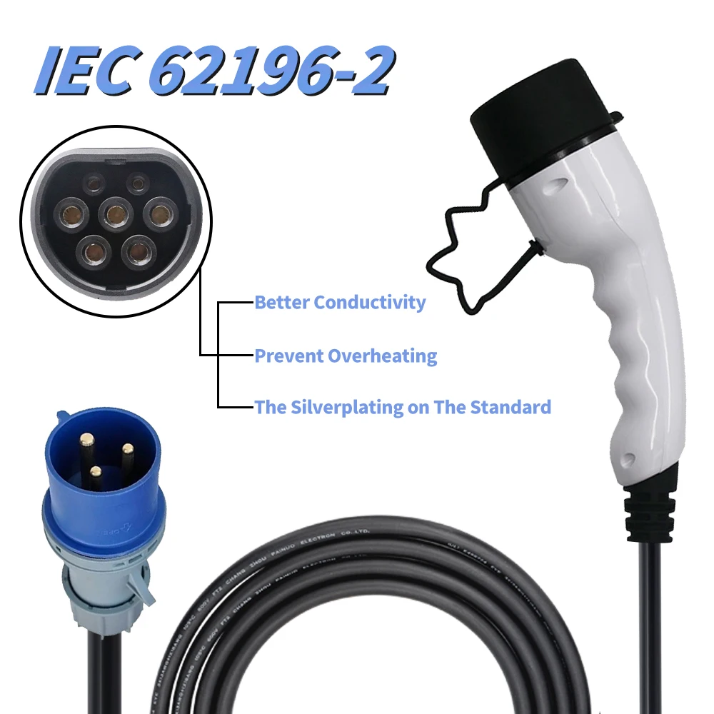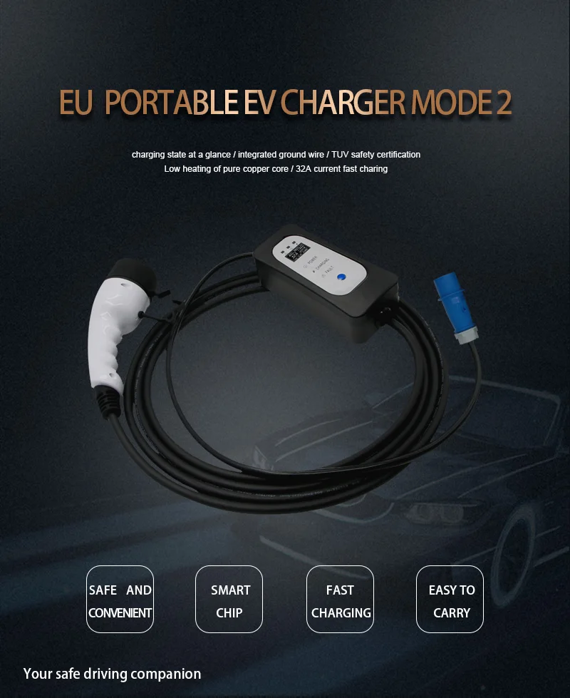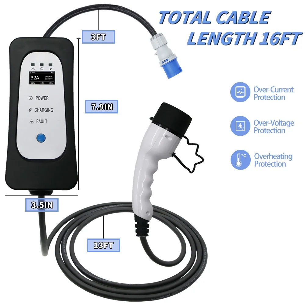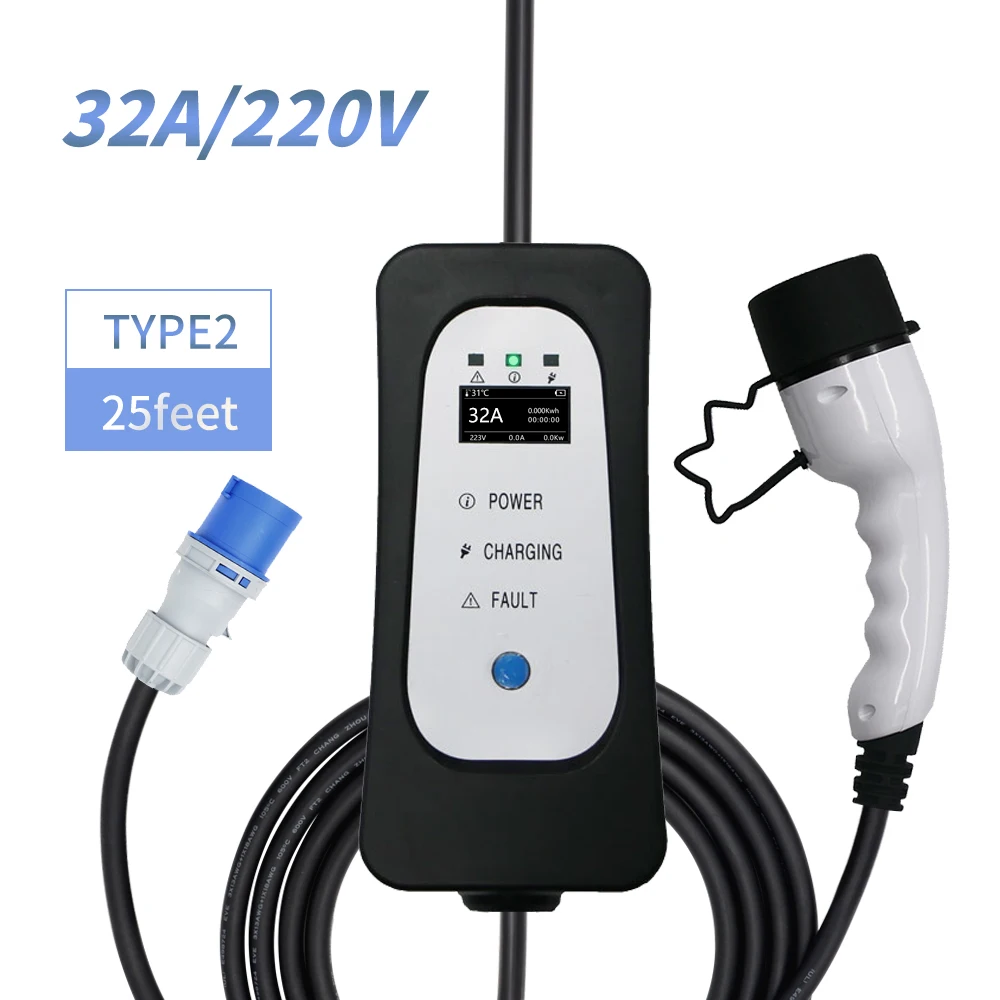 Зарядный кабель evse для электромобиля, контроллер зарядного устройства для электромобиля, тип 2, вилка стандарта cee, 32 А