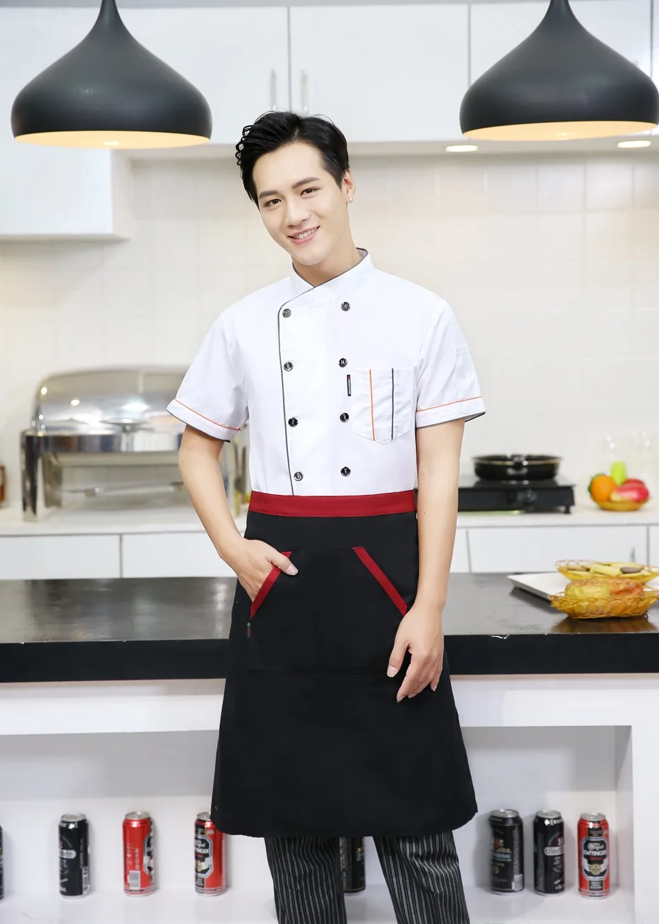 Костюм шеф-повара с коротким рукавом для ресторана, кухни, работы, двубортный пиджак для суши, пекарни, официант кафе, ресторанного обслуживания, фартуки