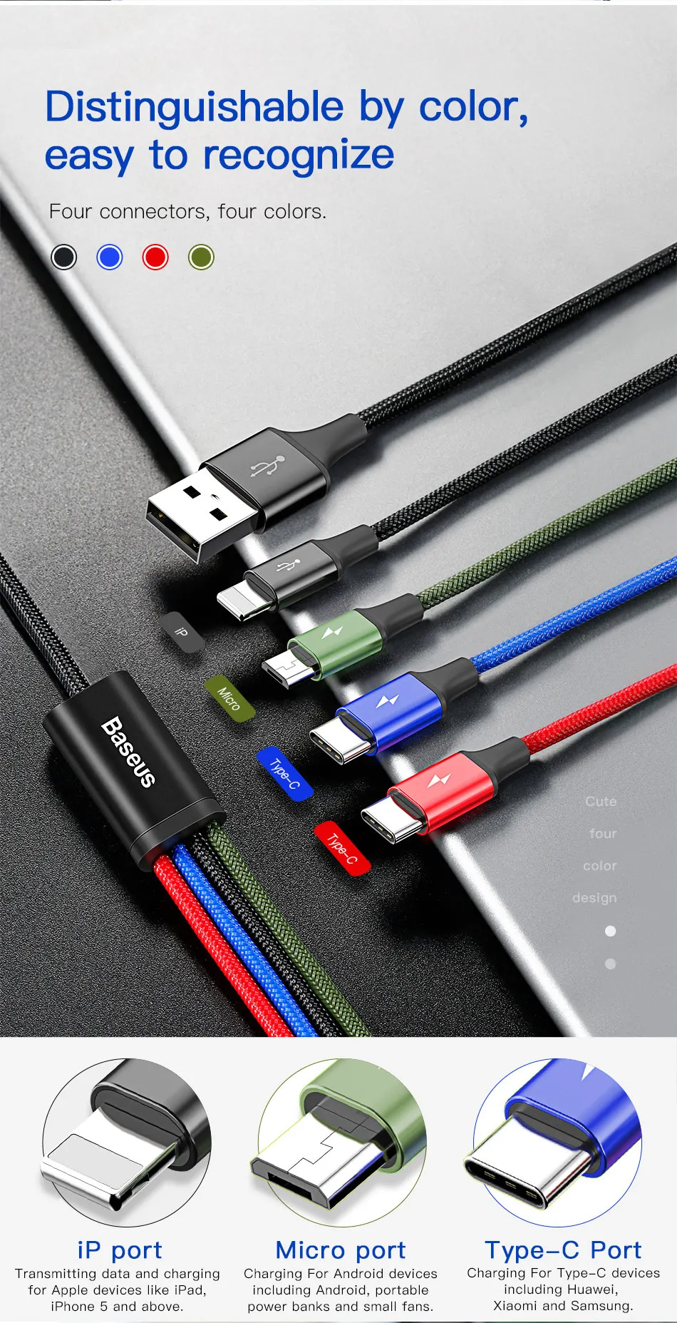 Кабель для зарядки 3 в 1 BASEUS, USB Type-A-Micro USB Type-С Lightning
