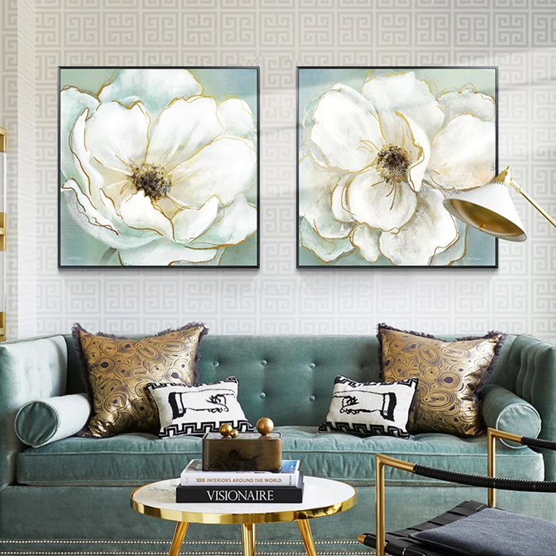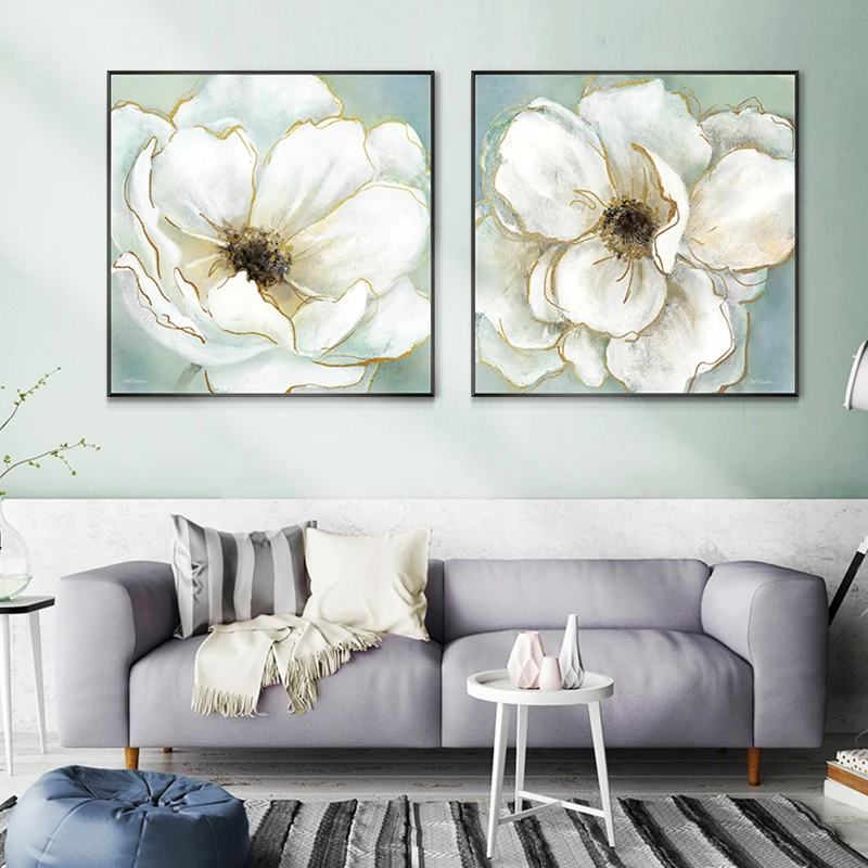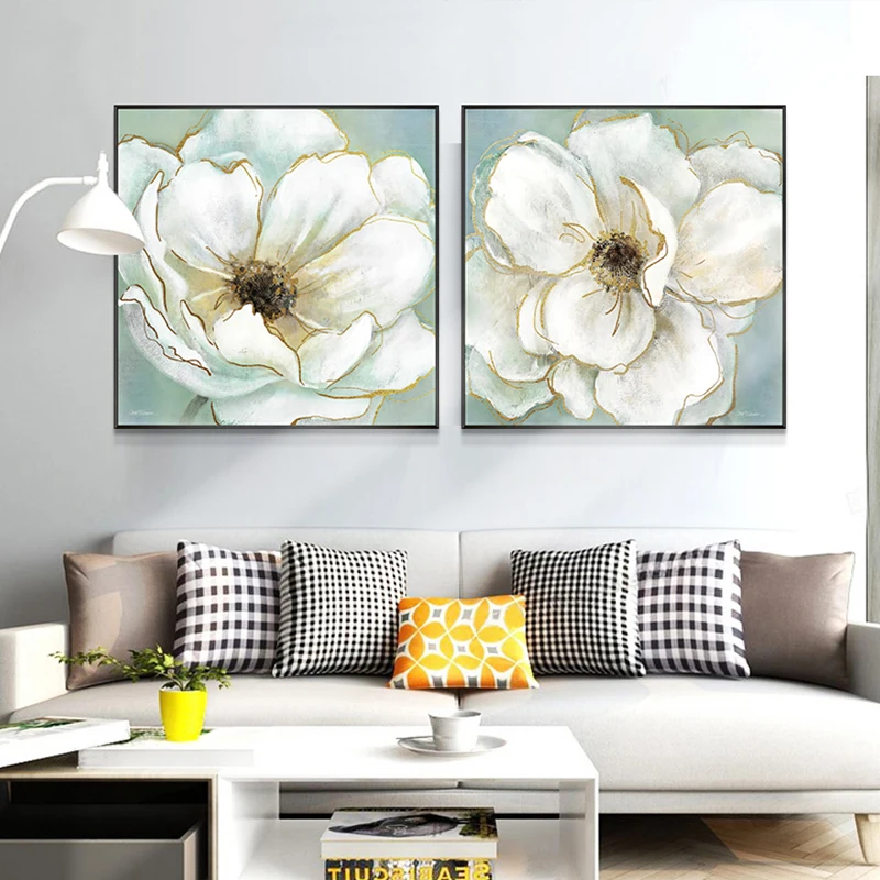 100% ручная роспись абстрактный белый цветок художественная живопис...