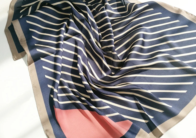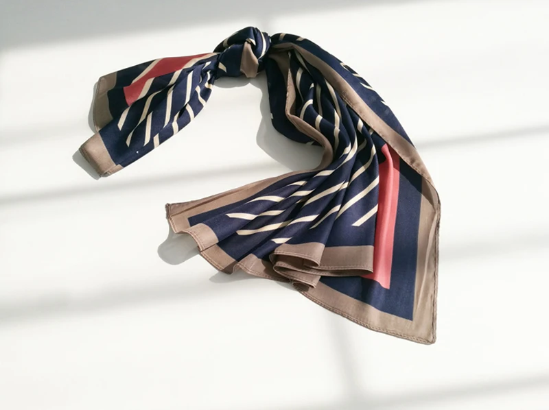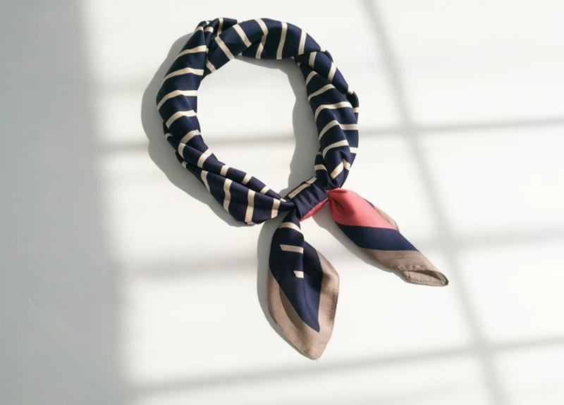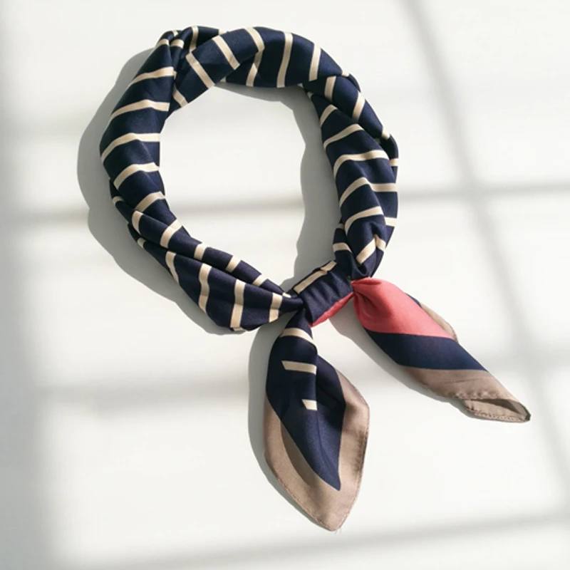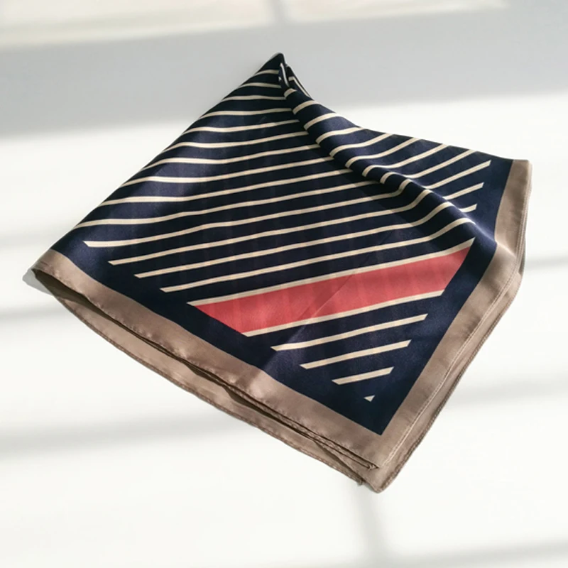 Женский квадратный маленький шарф Luna Dolphin, 70x70 см, в полоску, фиолетовый, красный, темно-синий, куркума, треугольник, шифон, шелковистый