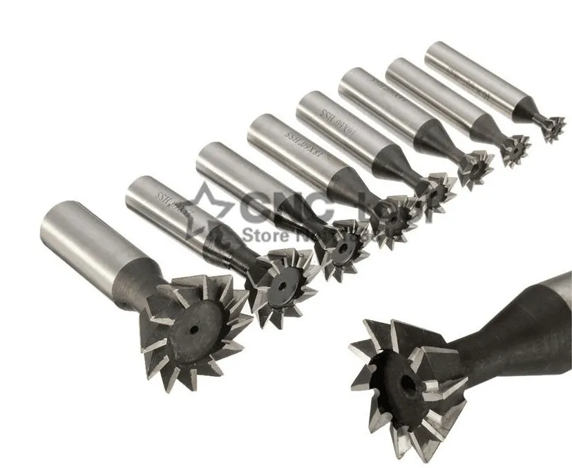 1 шт., Концевая фреза из быстрорежущей стали для резки Ласточкин хвост, 45 градусов, 10 мм, 12 мм, 14 мм, 16 мм, 18 мм, 20 мм, 25 мм, 30 мм, 32 мм, 35 мм, 40 мм, 45 мм, 50 мм, 60 мм