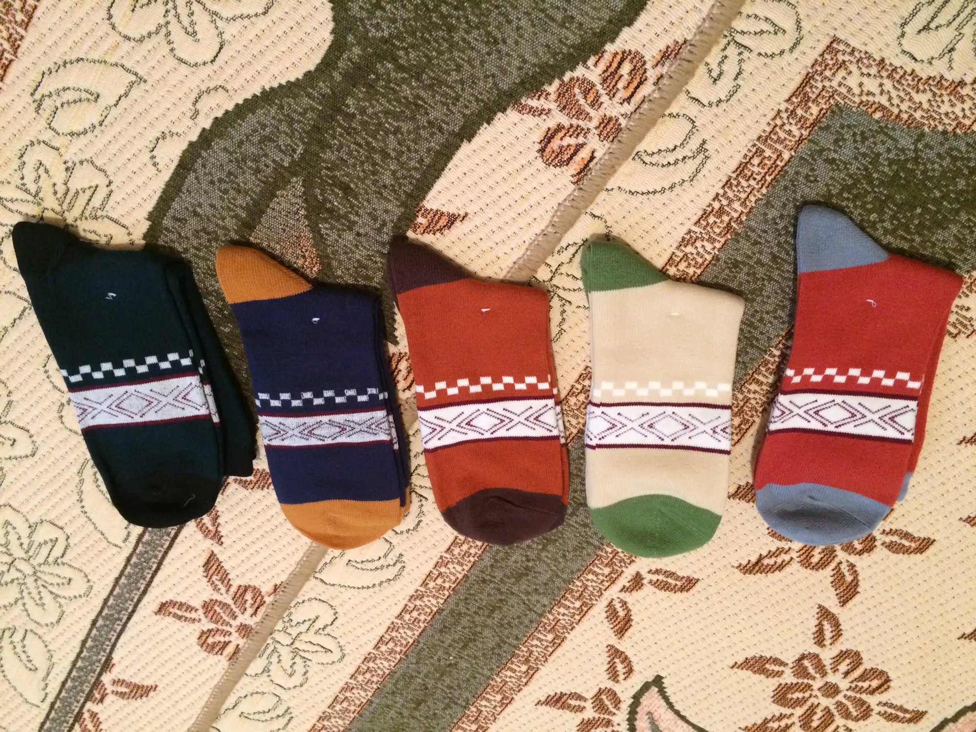 Доставка довольно быстрая. Но качество носков портит узорная линия на носке, она не растягивается. Поэтому сдавливает ногу и создает дискомфортное ощущение. Delivery is pretty fast. But the quality of the socks is spoiled by the patterned line on the sock, it does not stretch. Therefore, it squeezes the leg and creates an uncomfortable feeling.
