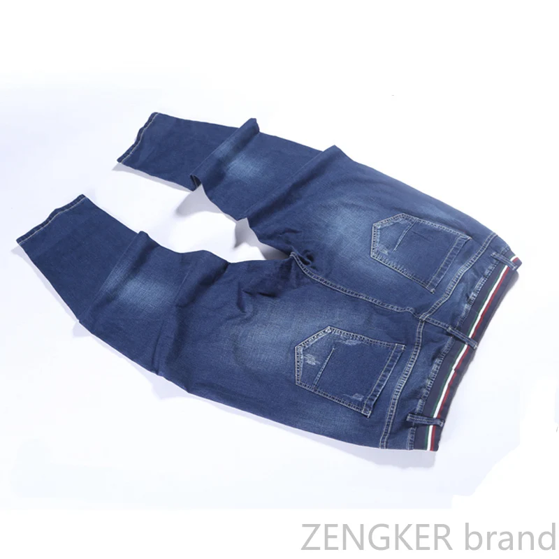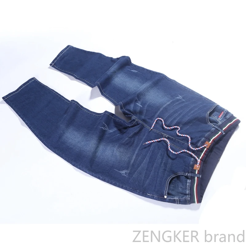 Свободные мужские брюки в стиле oversized с эластичной резинкой на талии, Размеры: Стрейчевые мужские джинсы, размера плюс, 2x-8x