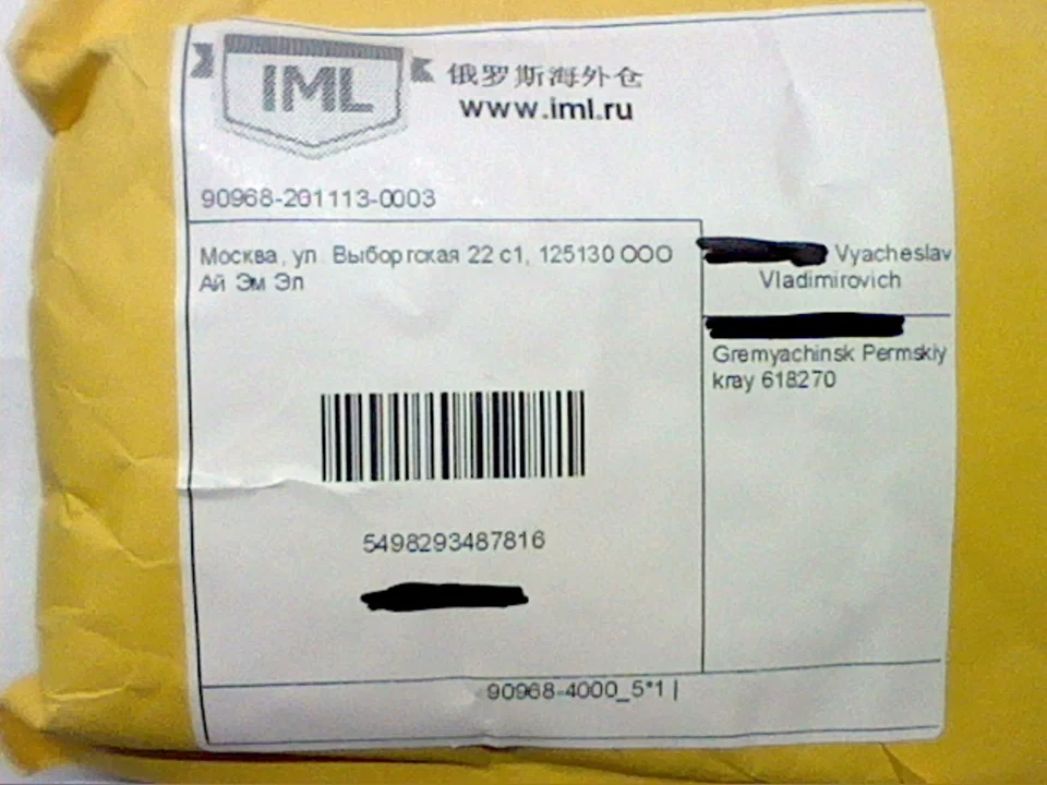 Страна: RU Ships From: Russian Federation Current: 5pcs BMS Доставка: IML Express 06.01.2021