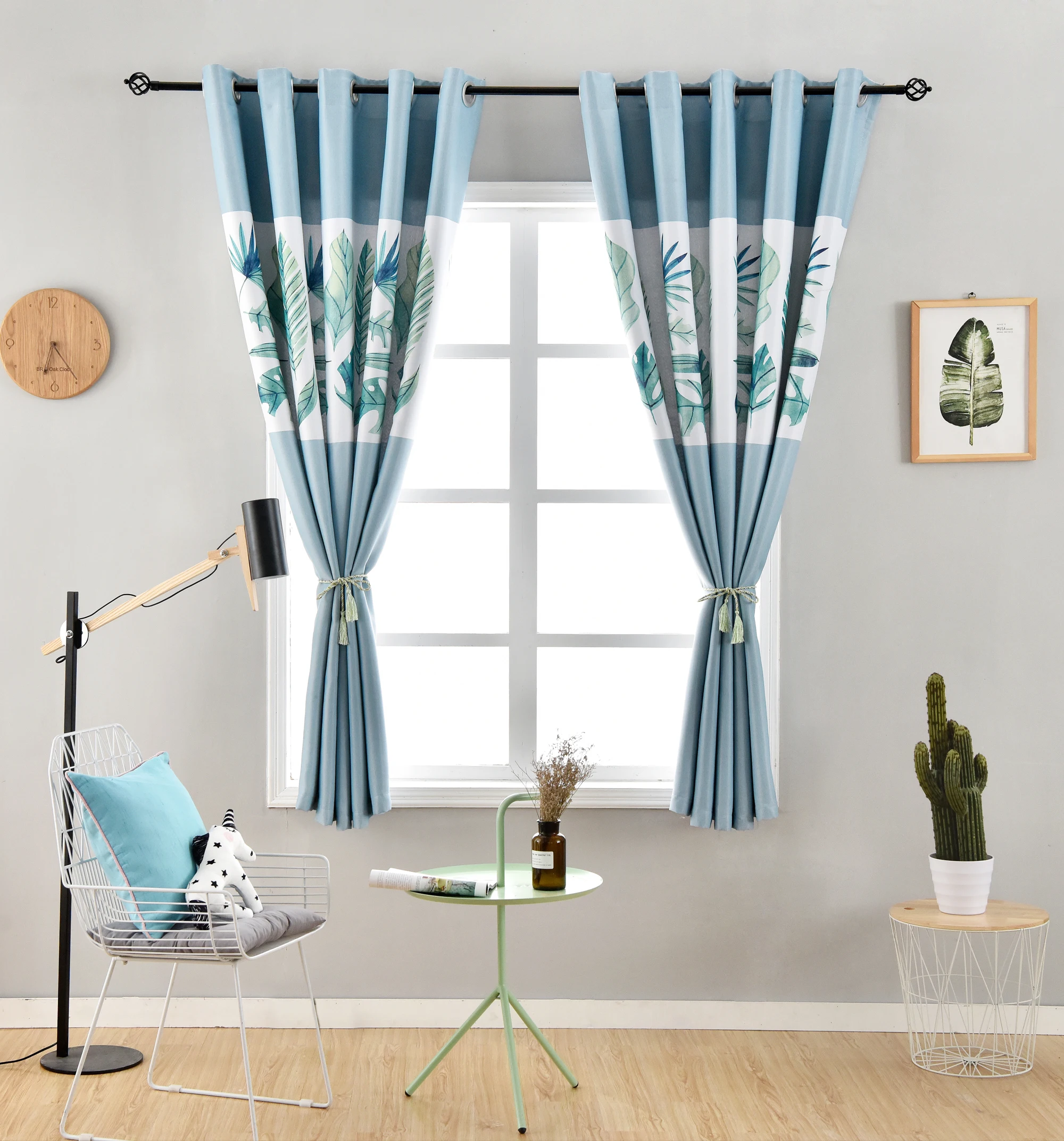 Затемняющие оконные шторы с синими листьями для спальни, гостиной, ...